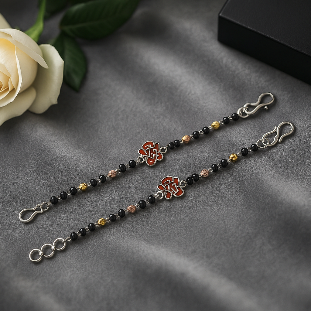 Elegantly crafted 925 silver nazariya (5g) featuring antique-finish detailing with premium silver lock and authentic bead work. Perfect blend of tradition and contemporary appeal for protective child adornment.
