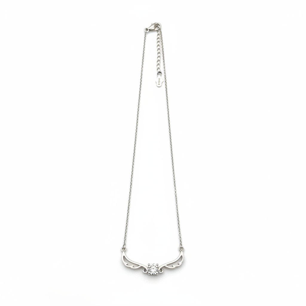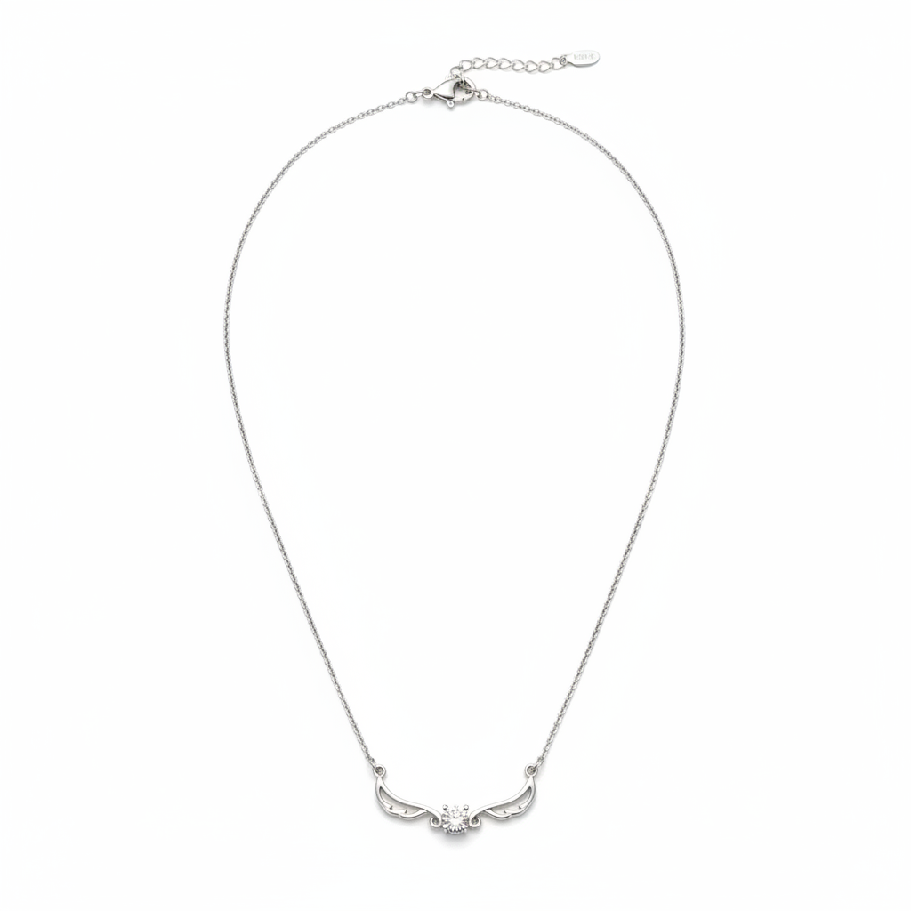 A graceful sterling silver chain adorned with delicately sculpted wings that meet at a sparkling center stone, this necklace embodies timeless elegance and meaningful symbolism. Each wing is meticulously crafted to capture movement and grace, while the luminous center stone catches light beautifully from every angle. Beyond its aesthetic appeal, this piece carries profound significance—wings represent freedom, protection, and the lightness of spirit, making it an ideal choice for those seeking jewelry with deeper meaning. The sterling silver construction ensures durability and a lustrous finish that complements both casual and formal wardrobes. Whether worn as a personal talisman or gifted to someone special, the Celestial Wings Necklace serves as a wearable reminder of aspiration and inner strength. Perfect for layering or wearing as a standalone statement piece.