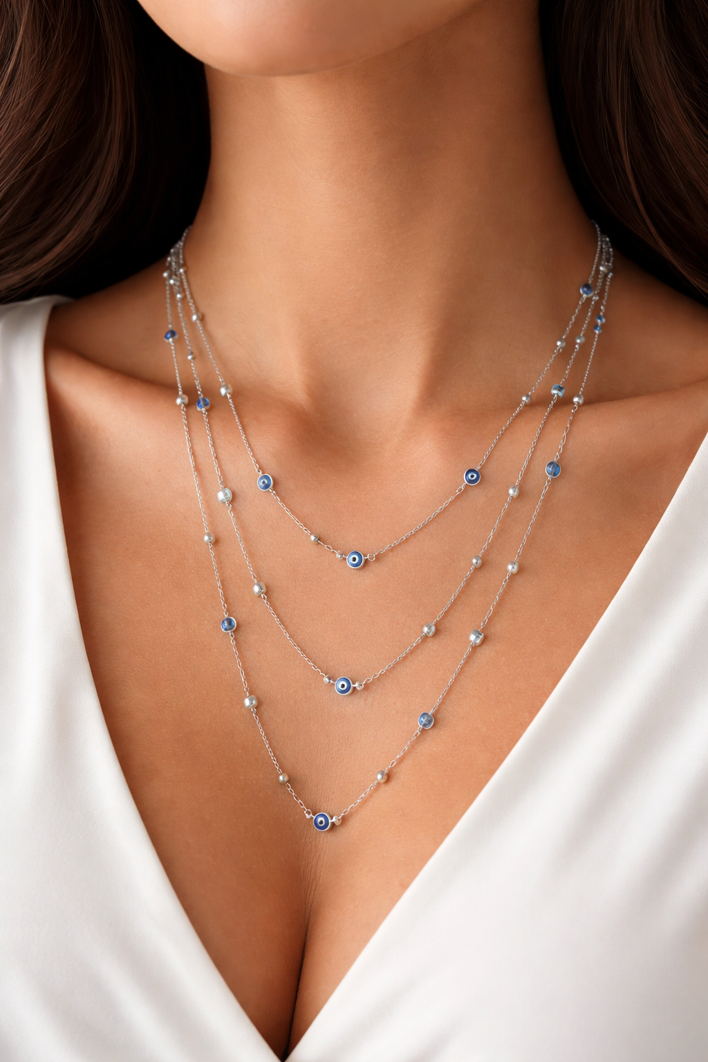 Elevate your accessory game with this elegant, bohemian-inspired triple-layered necklace that seamlessly blends contemporary design with timeless sophistication. Crafted in high-polish sterling silver, this piece features three cascading satellite chains that create a perfectly tiered look without the effort of styling multiple pieces. Each delicate chain is meticulously finished to catch the light beautifully, adding dimension and movement to any ensemble. The thoughtfully spaced layers offer versatility—wear it as a statement piece or layer it with your existing jewelry collection for a personalized aesthetic. Perfect for both everyday elegance and special occasions, this necklace transitions effortlessly from casual to formal wear. The secure clasp ensures durability and peace of mind, making it an investment piece you'll treasure for years to come.