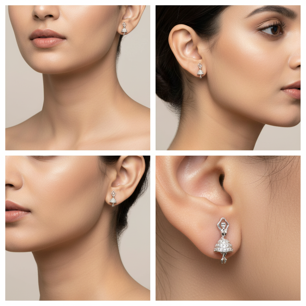 A premium handcrafted 925 sterling silver stud earring featuring a refined, elegant silhouette. Designed for modern minimalism, each piece undergoes precision polishing and is coated with an anti‑tarnish finish to ensure long‑lasting brilliance. Lightweight, skin‑safe, and perfect for daily wear, office styling, or gifting. Crafted with attention to detail, offering timeless beauty and comfortable all‑day wear.