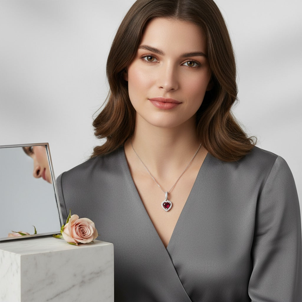 Red Bliss Heart Pendant captures timeless elegance with its vibrant crimson stone set in refined sterling silver. The single loop design offers versatile styling—wear it solo on a delicate chain for understated sophistication, or layer it with complementary pieces for added dimension. The smooth silver finish provides a striking contrast to the rich red hue, making this pendant a statement piece suitable for both everyday wear and special occasions. Crafted with meticulous attention to detail, this heart pendant embodies the perfect balance between romantic symbolism and modern minimalism. The sterling silver construction ensures durability and longevity, developing a natural patina over time that enhances its character. Whether gifted as a meaningful token or treasured as a personal keepsake, this pendant serves as a versatile accessory that complements any wardrobe. Ideal for those who appreciate classic jewelry with contemporary appeal and seek pieces that transcend seasonal trends.