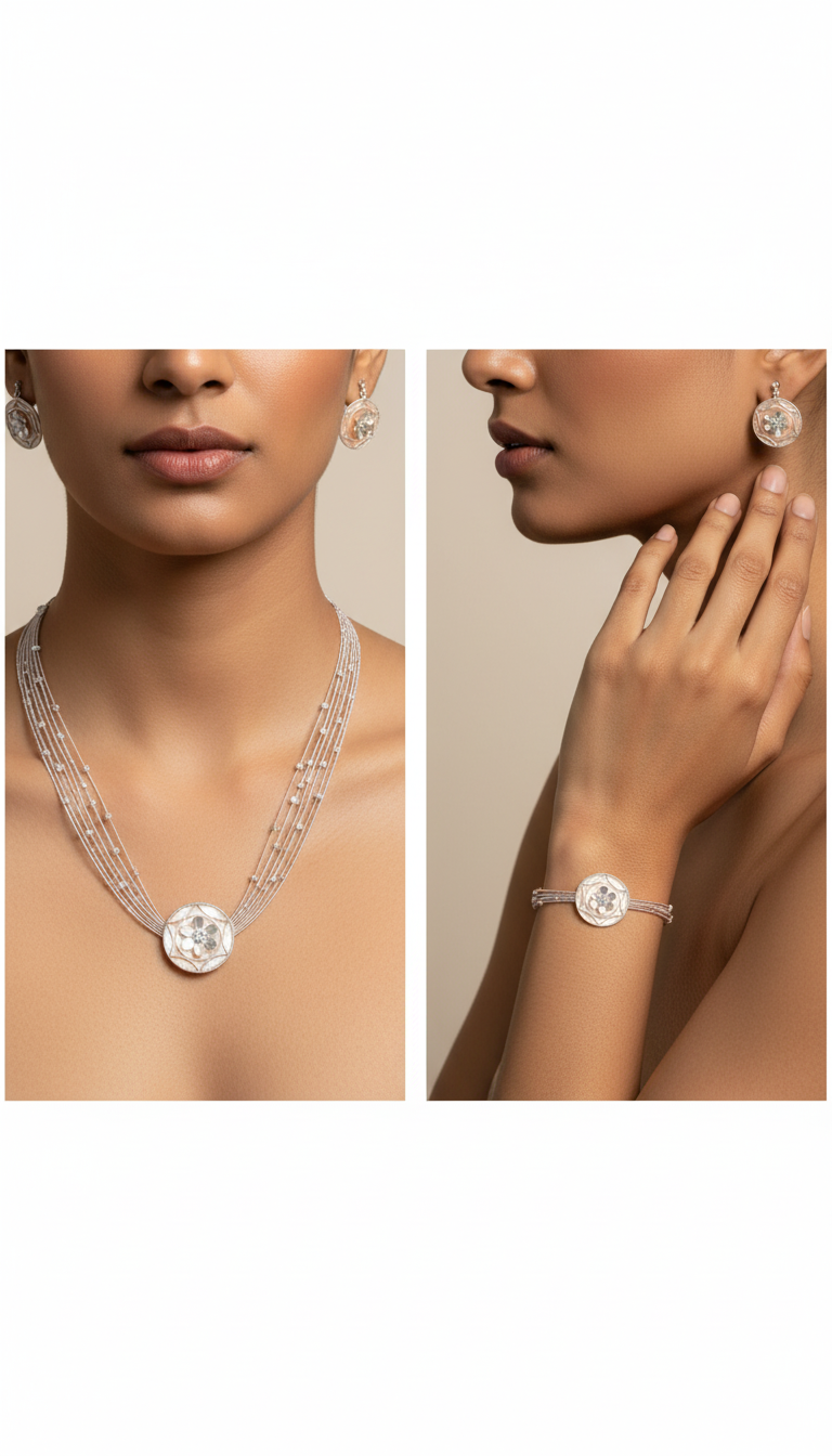 Timeless, bold 925 silver choker set (15g) designed for statement-making looks and powerful presence. Ideal for parties, celebrations, and special occasions, this premium-crafted piece features superior durability and exceptional shine that endures through frequent wear.